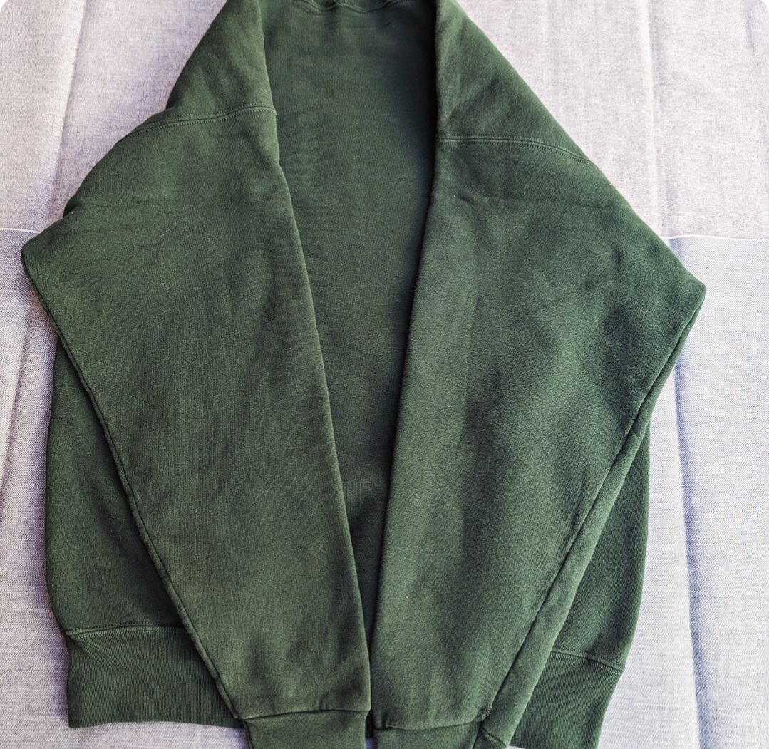 状態詳細:使用感、多少褪色、脇と袖にダメージ穴。