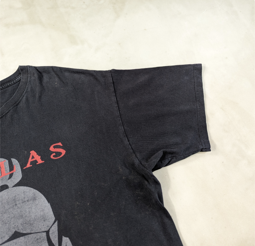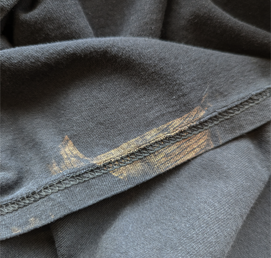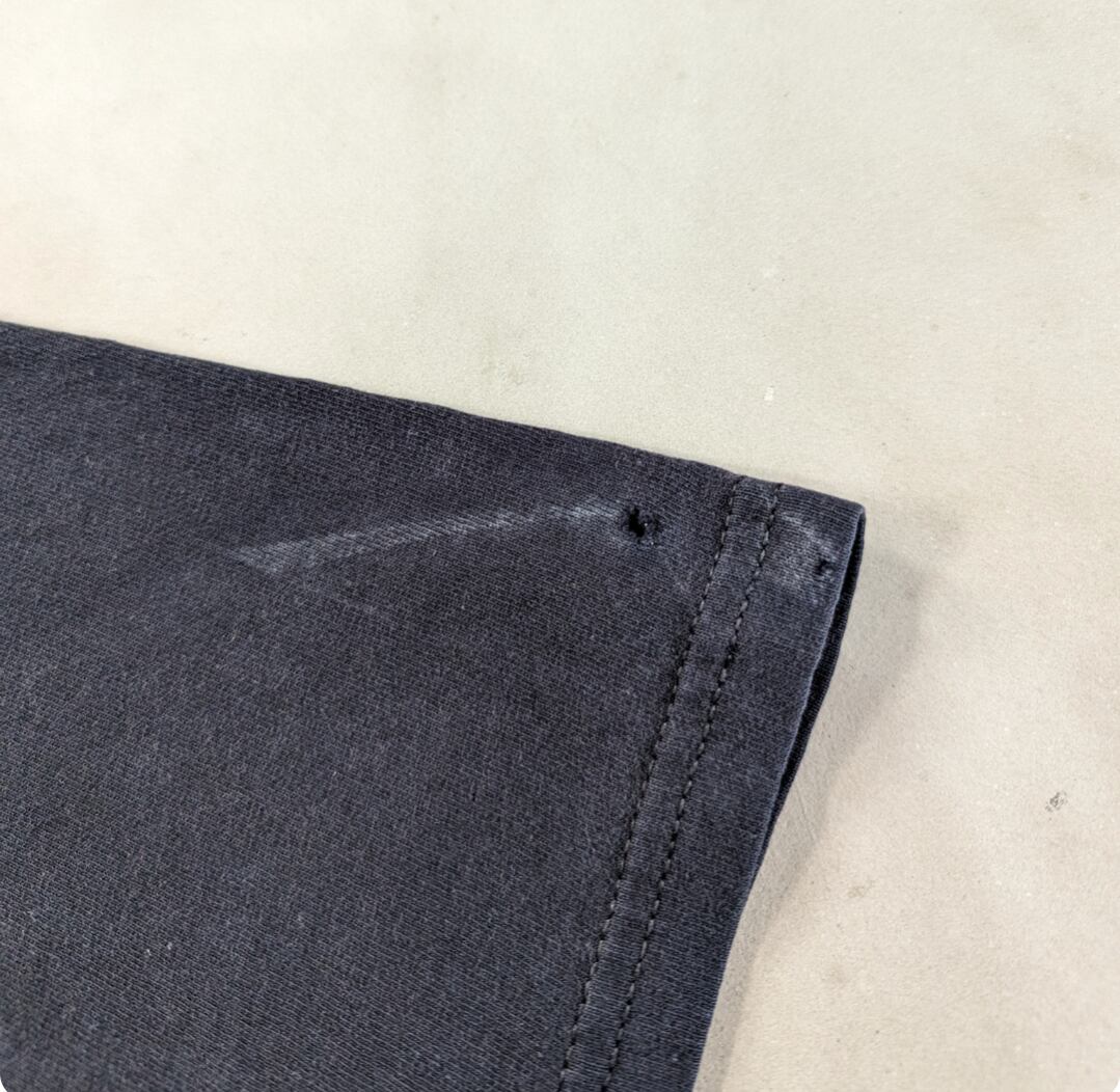 状態詳細:使用感、褪色、プリント擦れ、汚れ、ステッチホツレ、穴