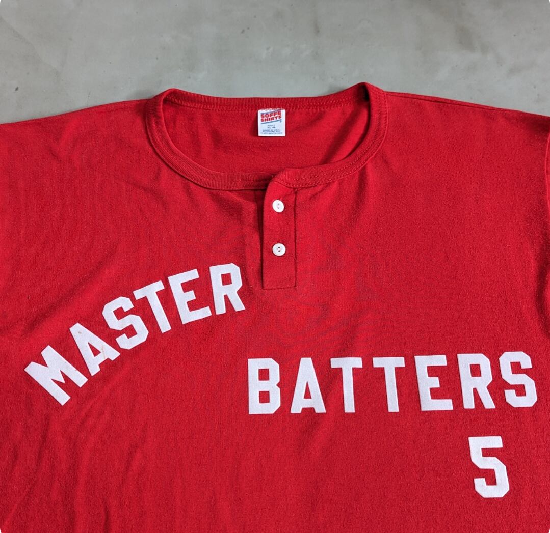 90s henry neck "master batters 5" baseball tee 小岩店