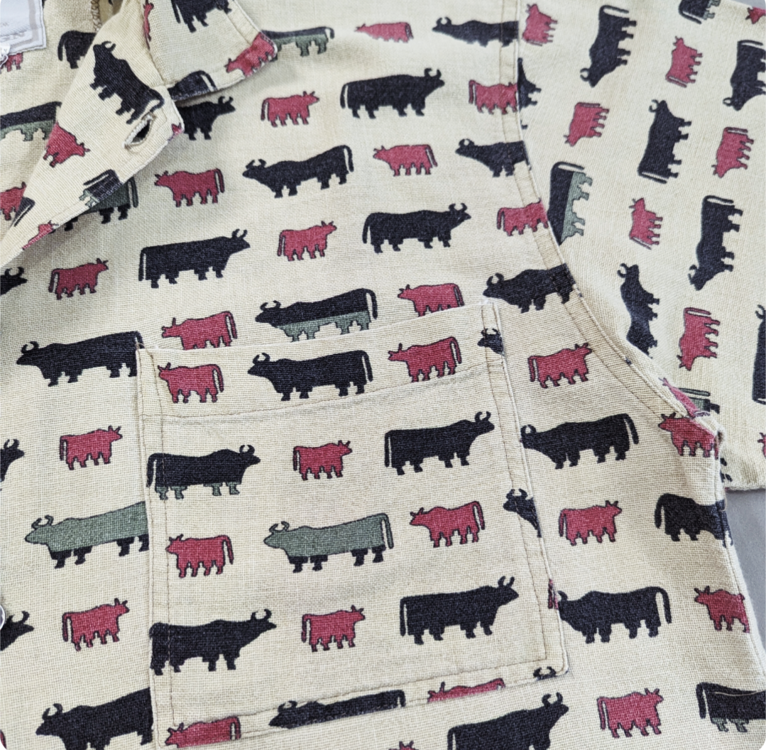 グラフィックの良い麻っぽい、コットンシャツです。