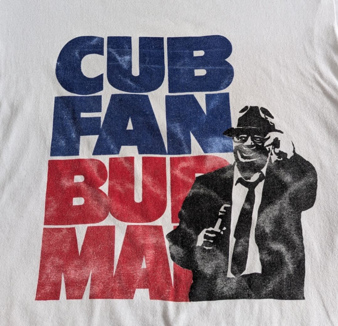 愛嬌ある同氏とCUB FAN BUD MANのキャッチフレーズがプリントされたtee