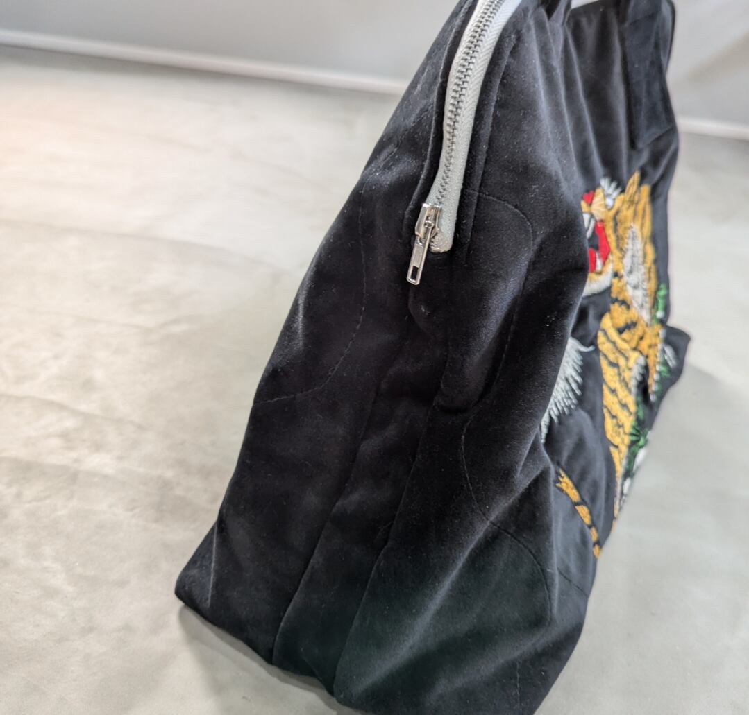 状態詳細:未使用品ですが、ベロア独特な擦れ、ハンドル下辺りと側面に僅かに白く薄汚れあり。