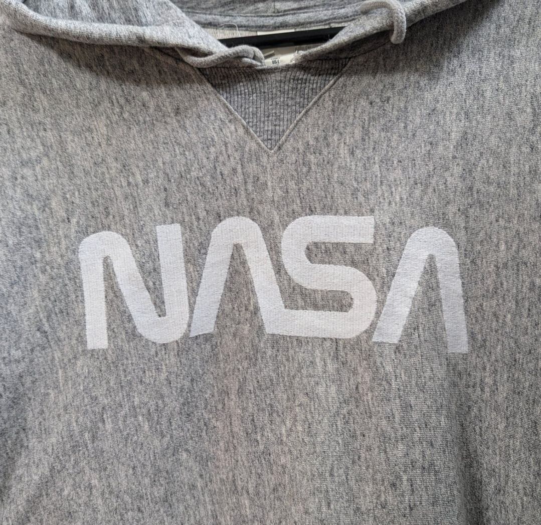 NASAの刺繍ロゴ入りの前Vガゼット付き リバースフーディタイプ