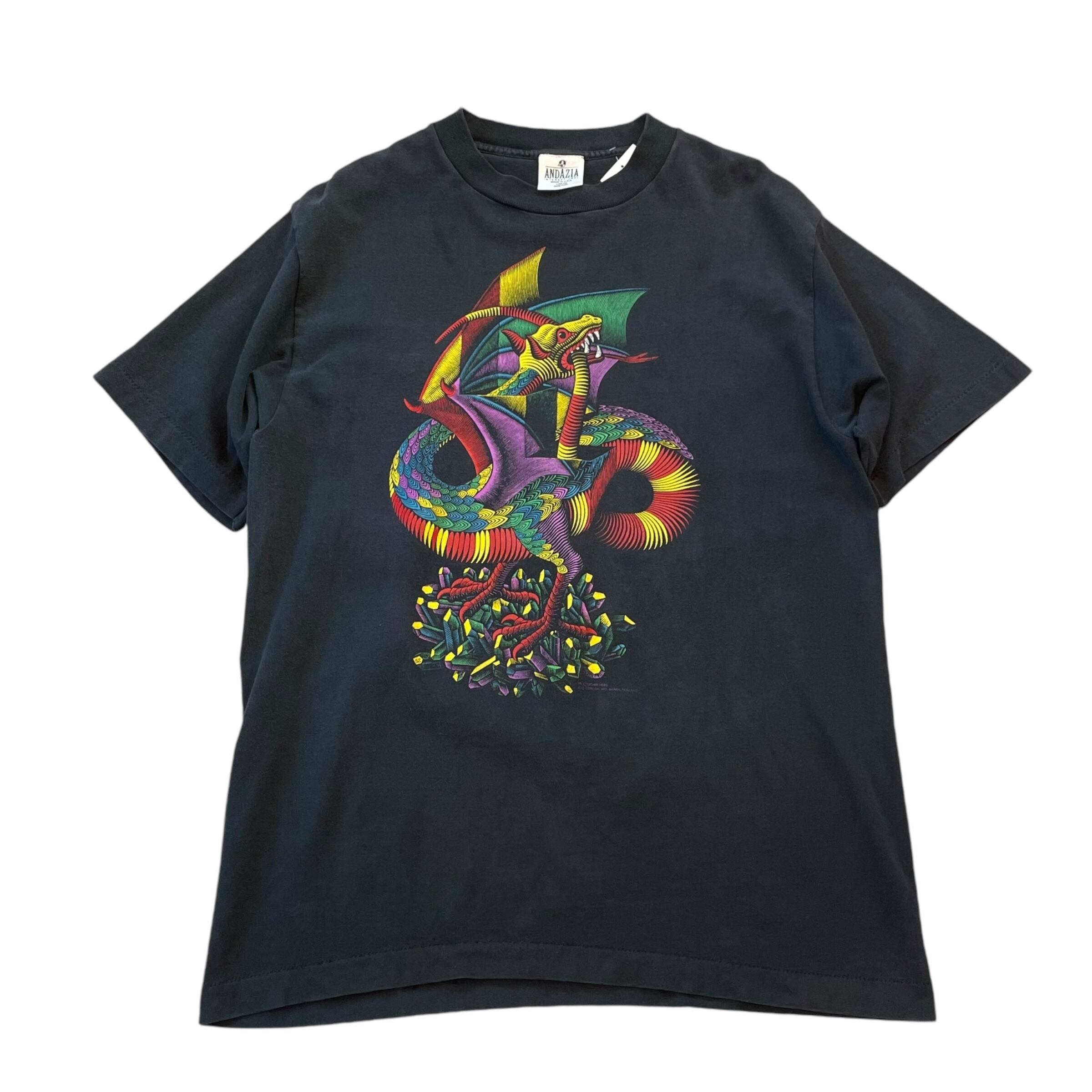 Special!! 1990s M.C.Escer "BLACKLIGHT POSTER" Dragon T-shirt
