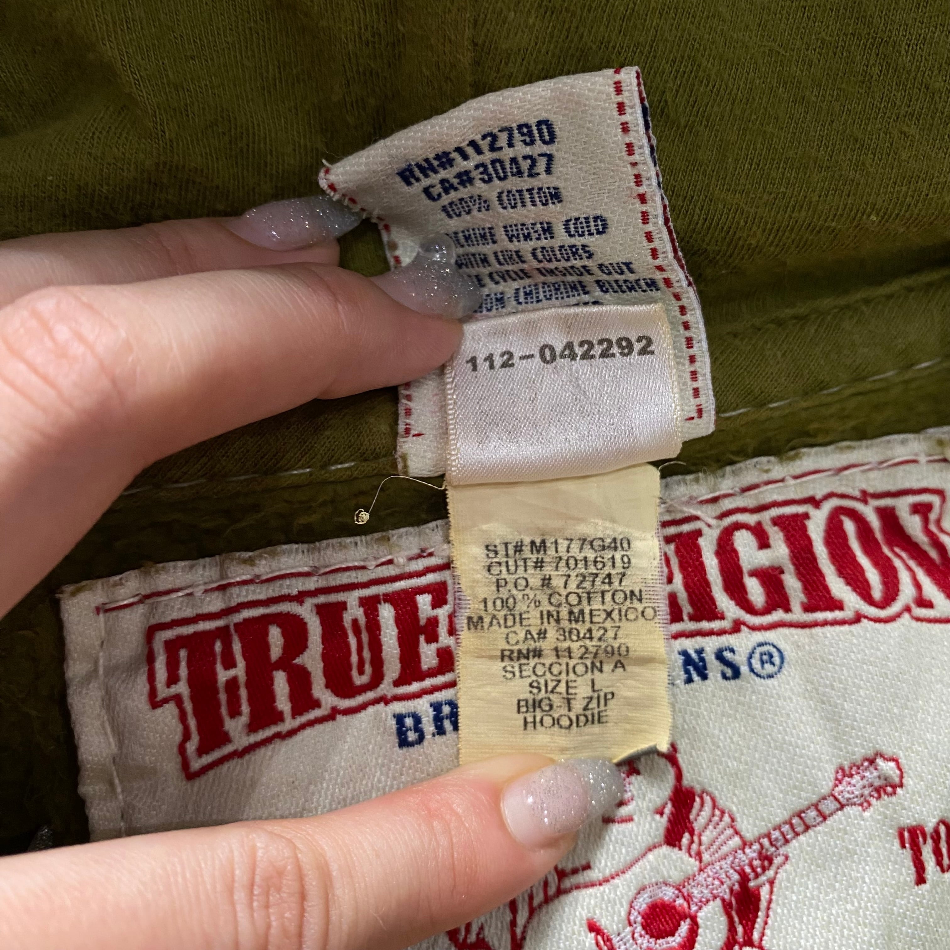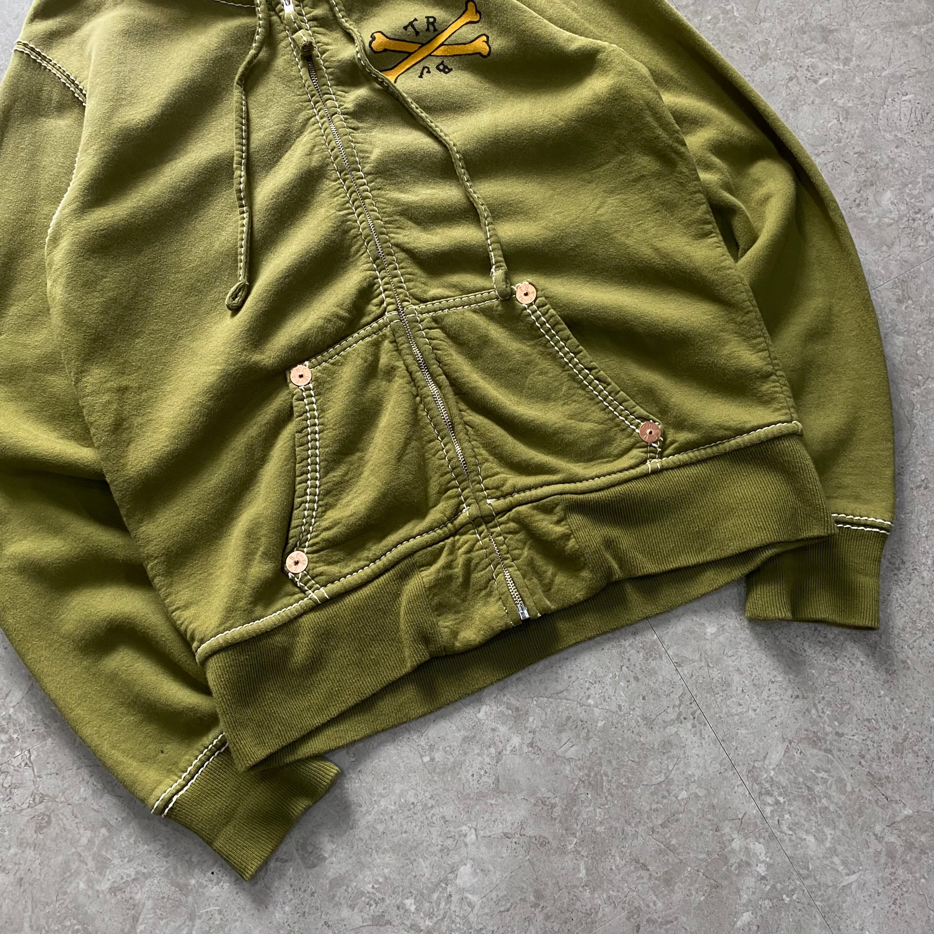 00s TRUE RELIGION "BIG T" stitch design zip up hoodie