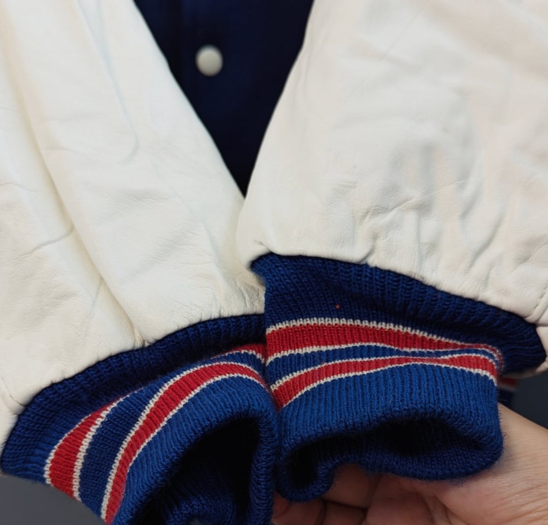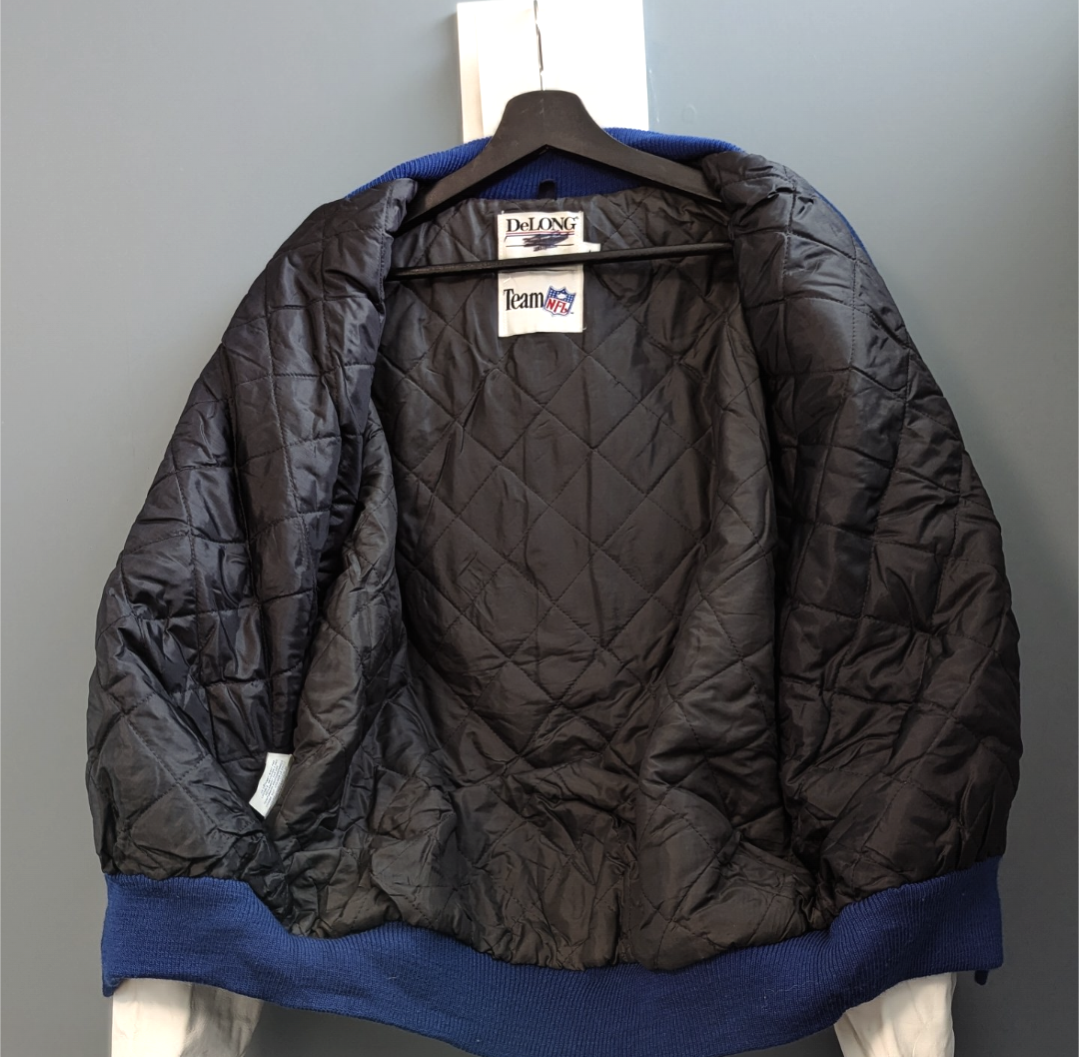 トリコロールカラーがトレードマークなバッファロー・ビルズの1990.1991.1992のキャンプの希少なオフィシャル物のスタジアムジャケット。