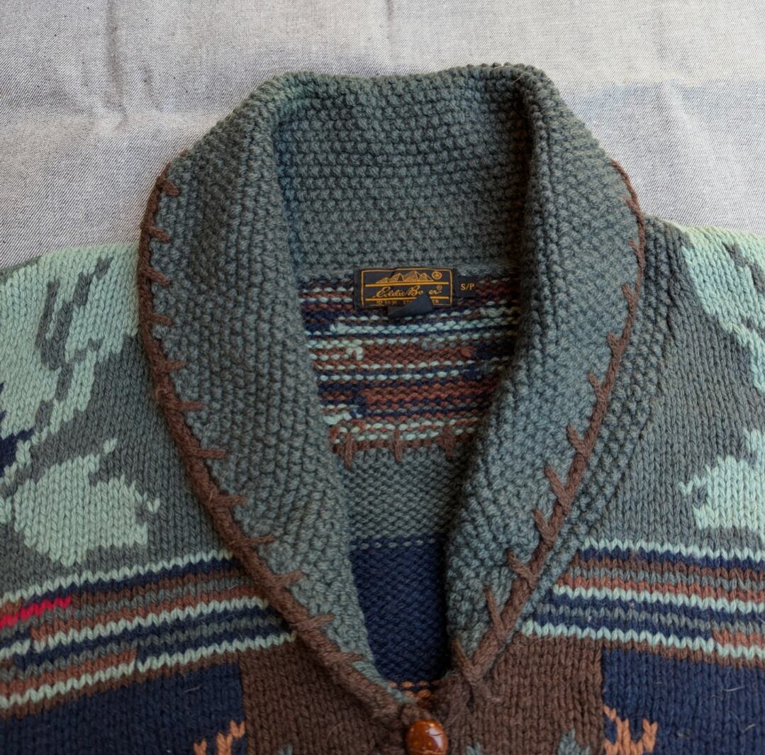 エディバウアー カウチン ウール ショールカーディガン