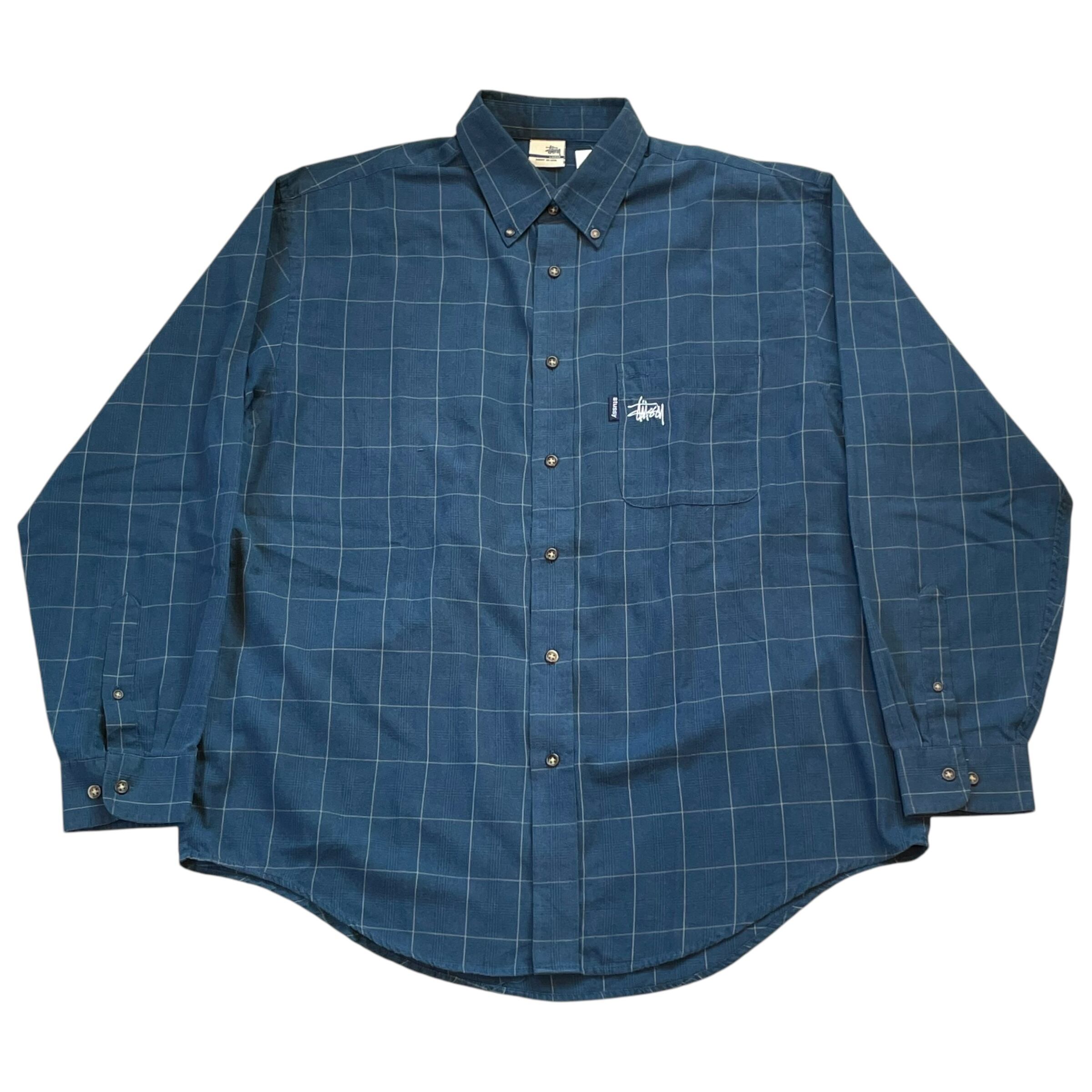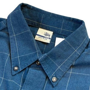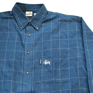 ③2000s Bootleg STUSSY embroidery B/D check shirt