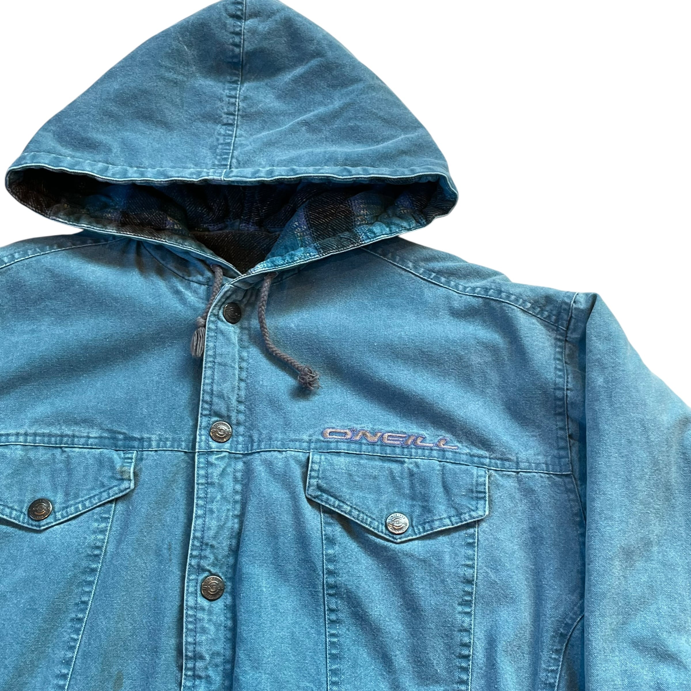 80s ONEILL "flannel × chambray" reversible quilting jacket