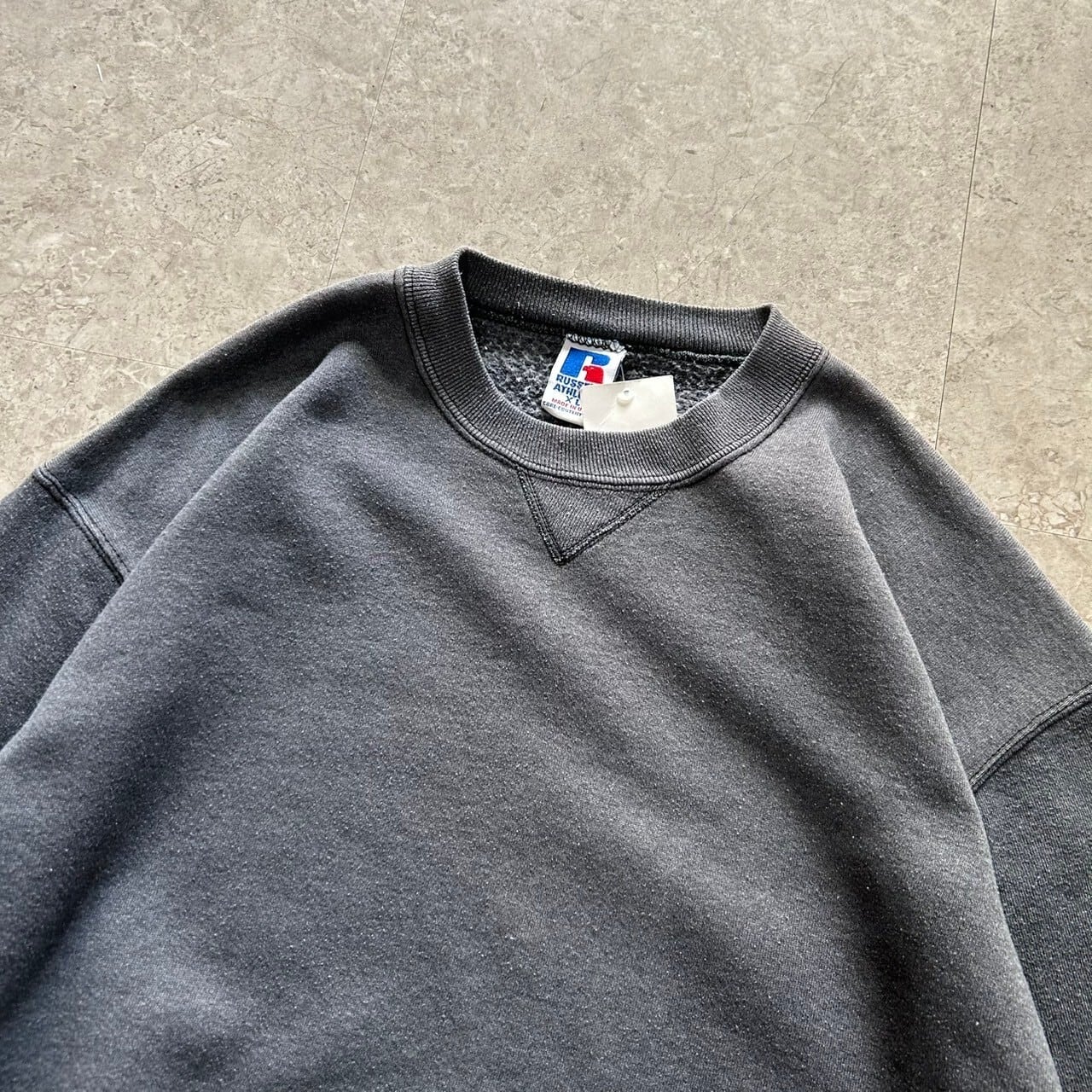 90s RUSSELL ATHLETIC V gusset sweat "charcoal gray"【仙台店】