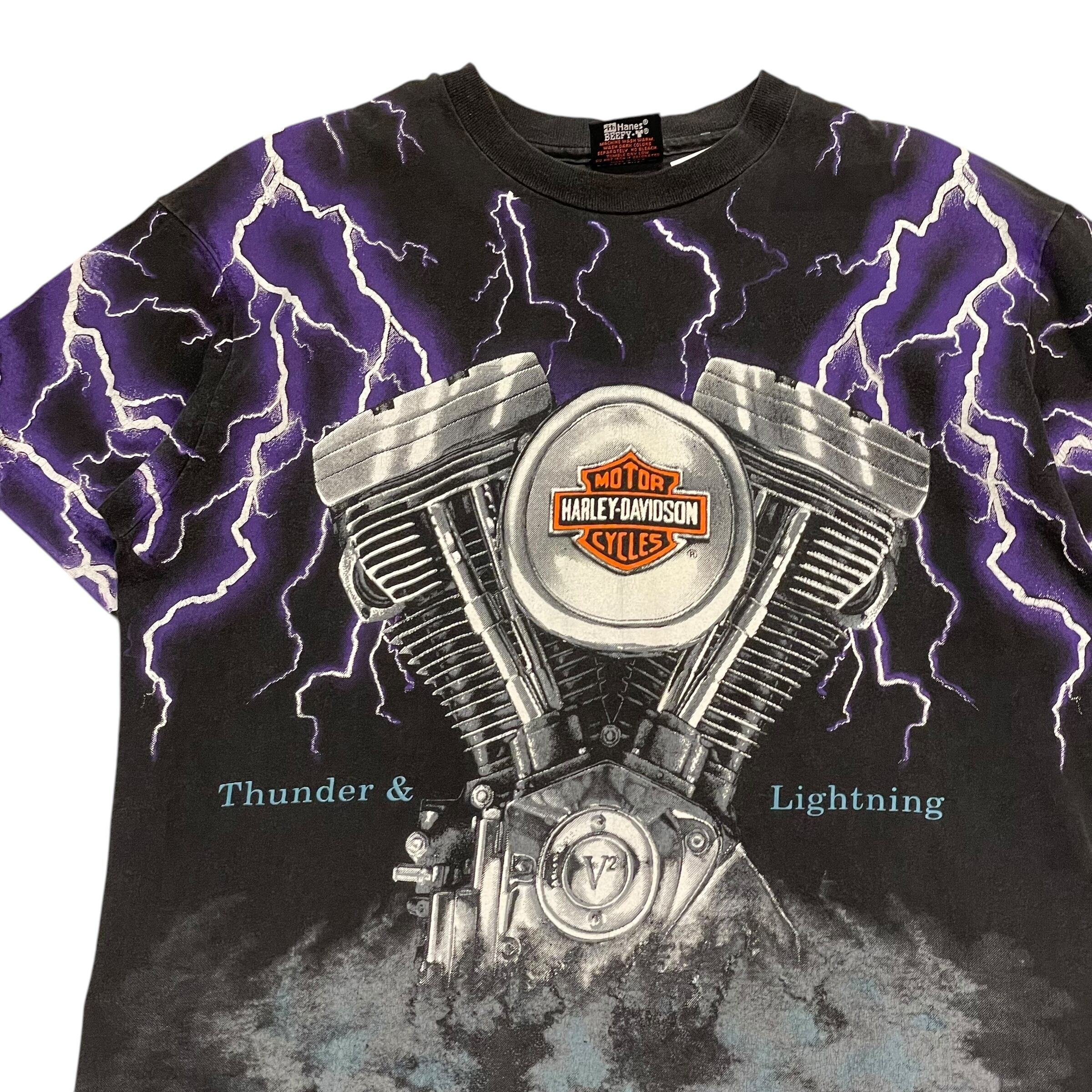 ②1990s Harley-Davidson "Thunder & Lightning" T-shirt