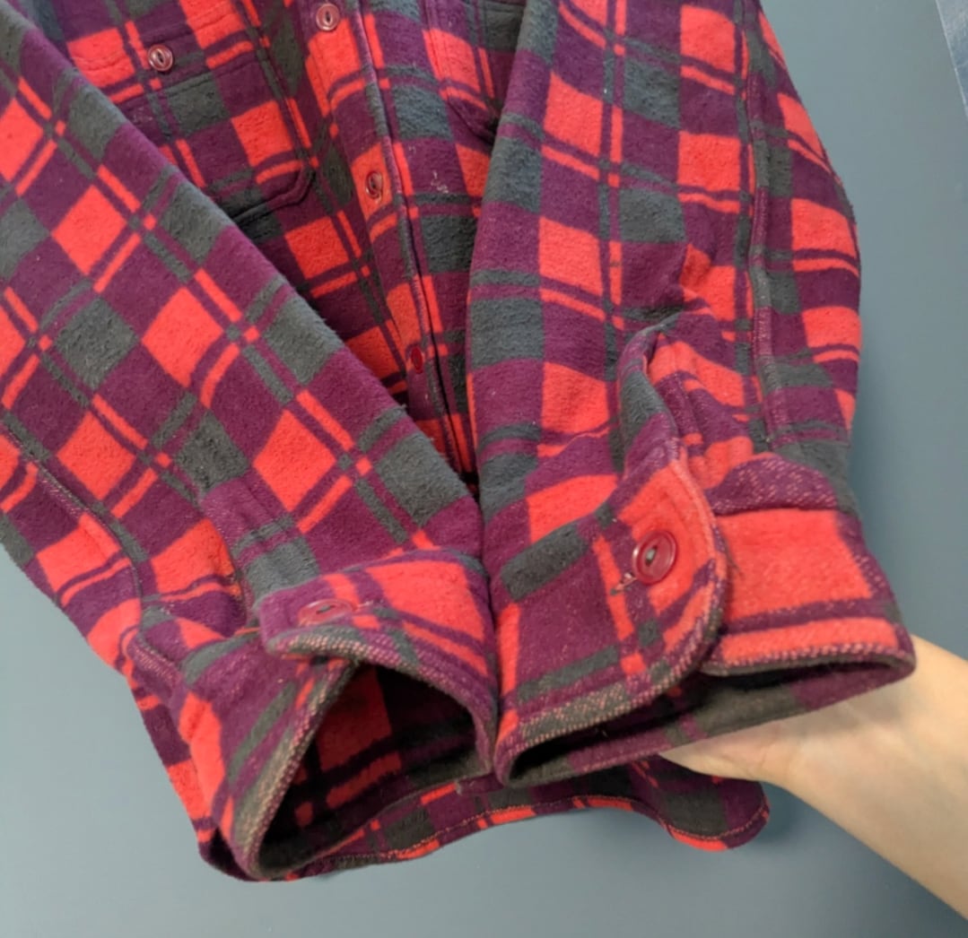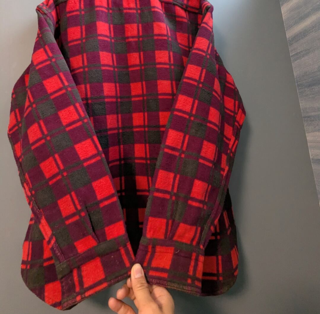 猫目ボタンの付く、ちょい古なシャモアクロスのチェックシャツ。