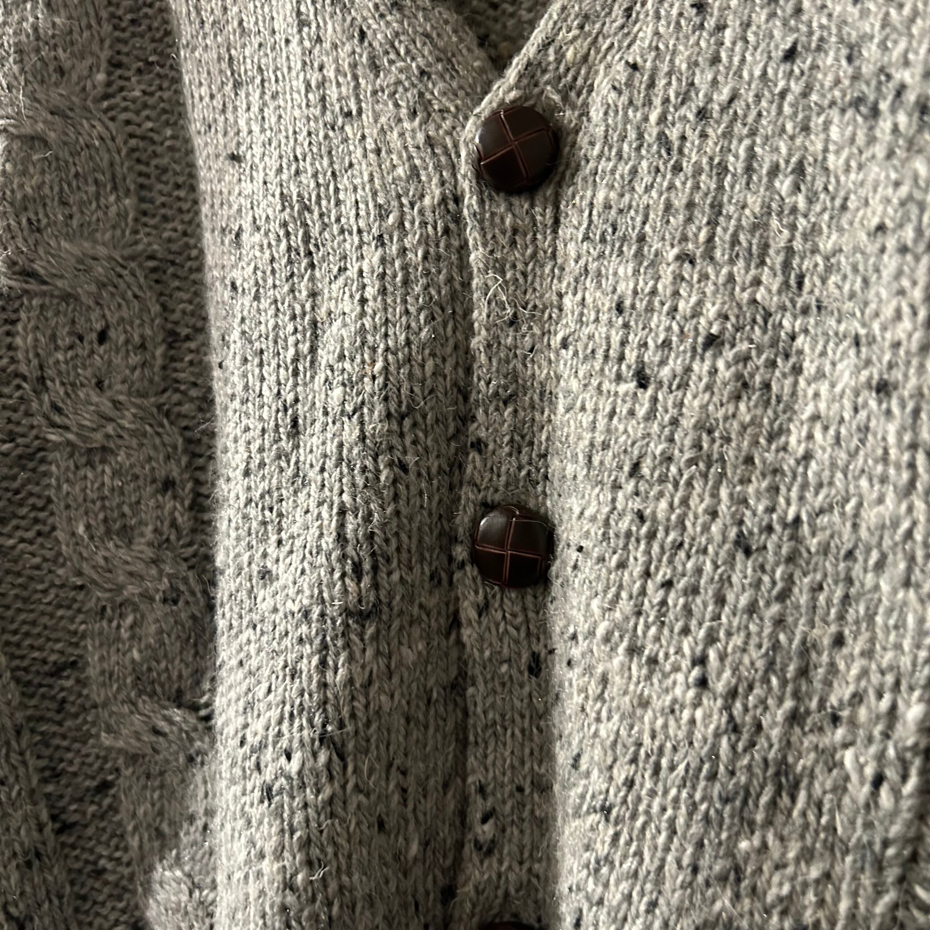 グレーベースのネップやケーブル編みのデザイン、クルミボタンなど魅力的なディティールの多いグッドレギュラー◎