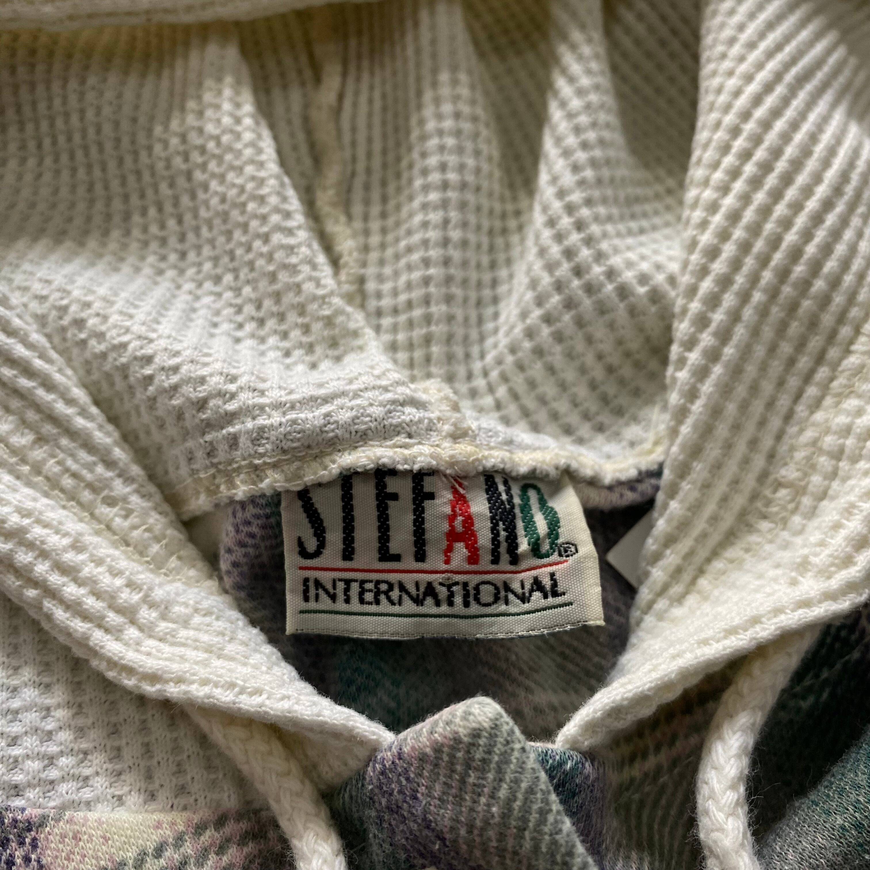 90s STEFANO thermal switching flannel shirt hoodie