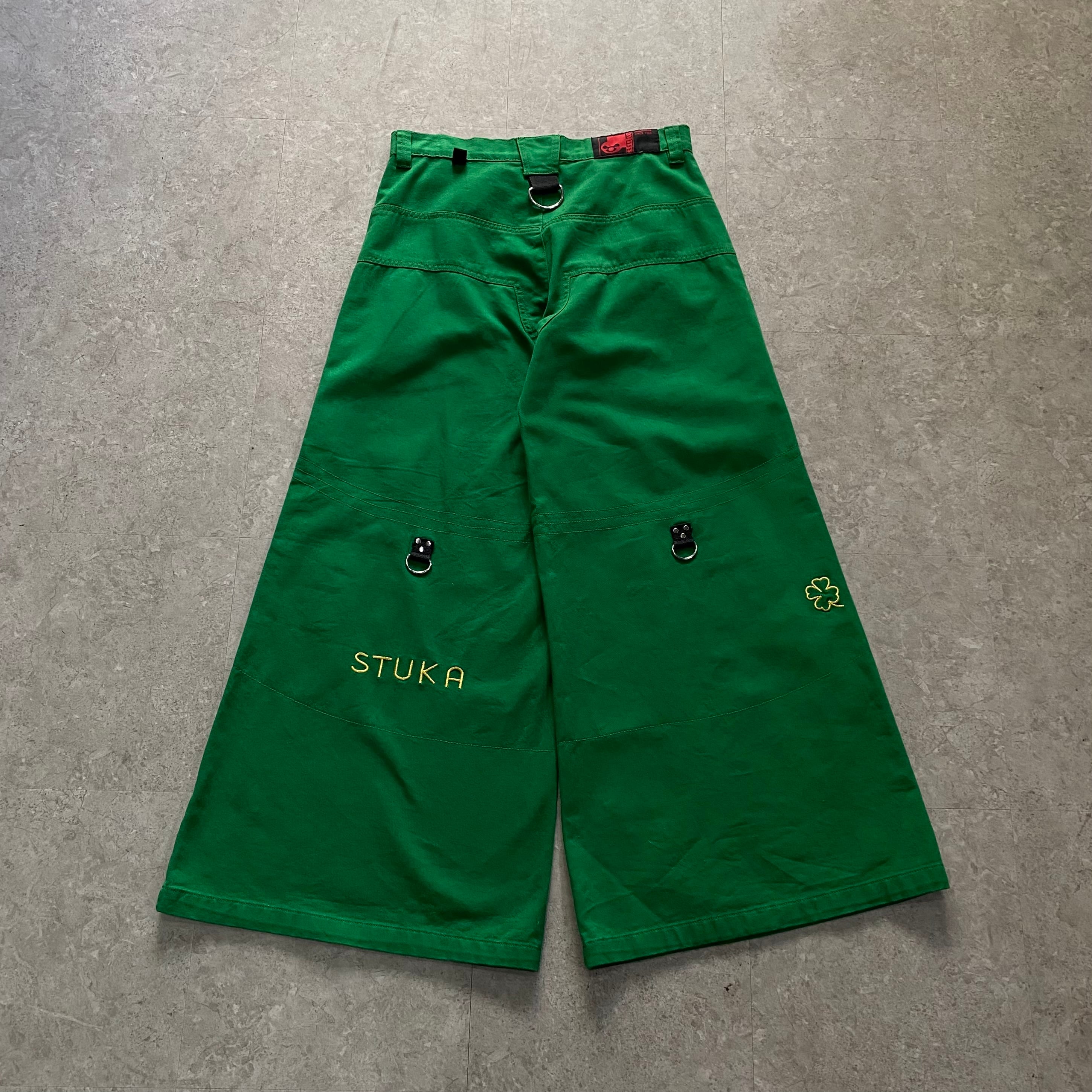 old STUKA wide flare rave pants