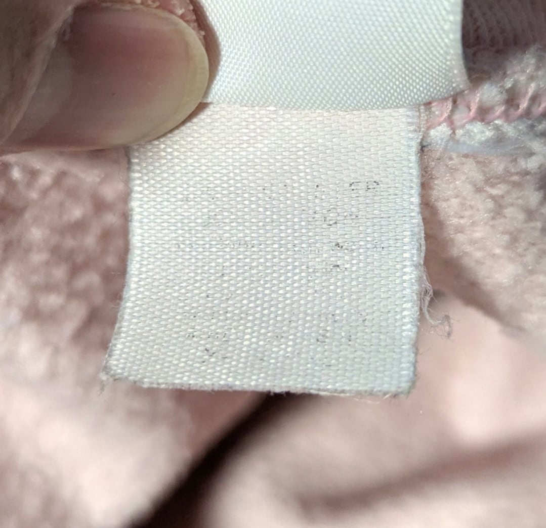 背面クラシックなグラフィックが評価高い薄ピンクボディのスエットです。